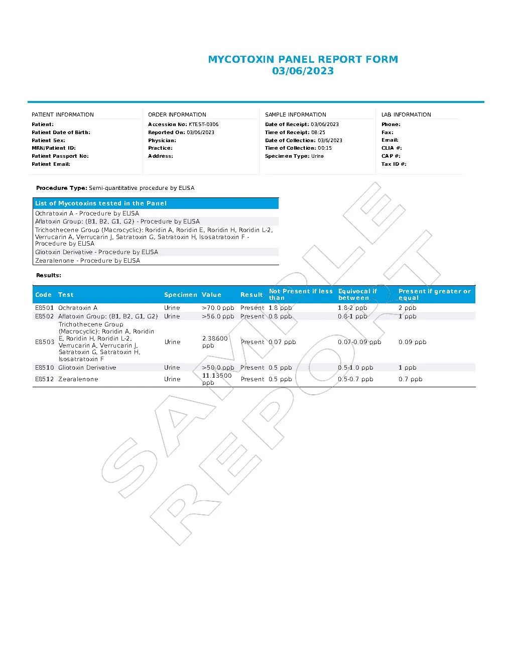 The MycoToxin Panel tests for 16 of the most common mycotoxins produced by over 300 mold varieties, offering valuable insights into potential mold toxicity.